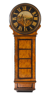 having Roman numeral hours, the dial depicting a hunting scene.