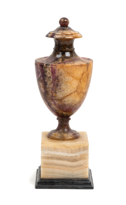 An English Blue John Urn and Cover Height 8 3/4 inches.