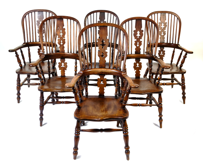 Six English Oak Windsor Chairs Height 44 3/8 inches.