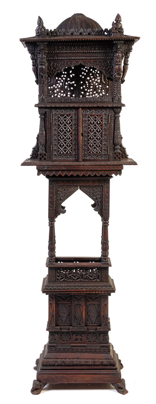 An Anglo-Indian Pierce Carved Shrine Cabinet Height 68 x width 20 1/2 x depth 8 3/4 inches.