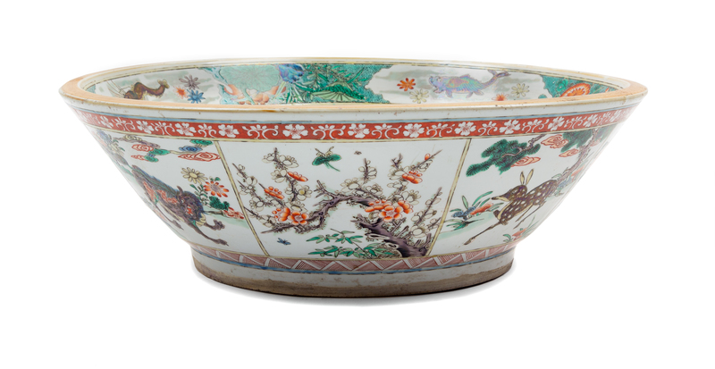 A Chinese Famille Verte Porcelain Bowl Diameter 18 1/4 inches.