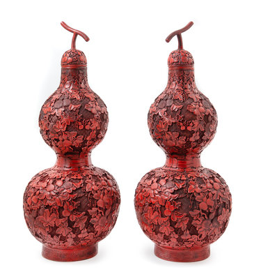 A Pair of Chinese Cinnabar Covered Vases Height 24 1/4 inches.