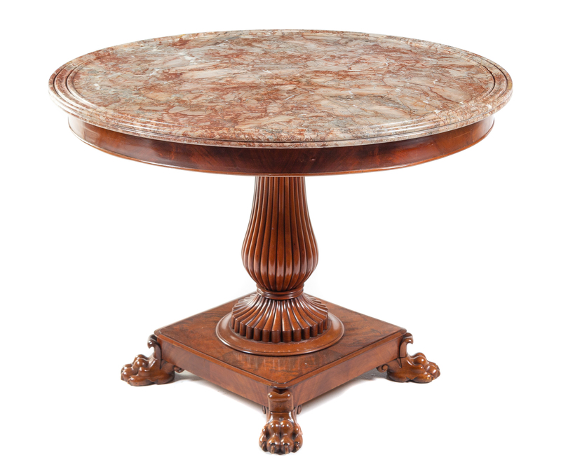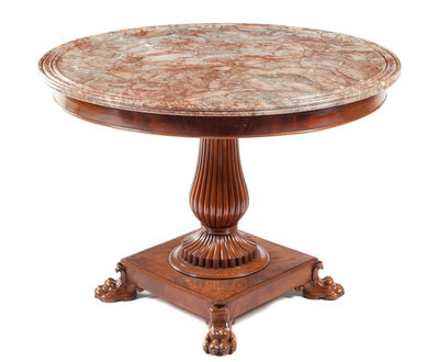 A Charles X Mahogany Center Table Height 30 1/2 x diameter of top 41 inches.