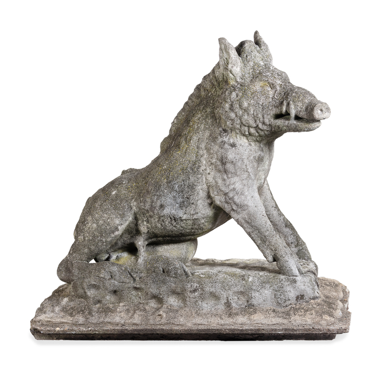A Large Continental Stone Calydonian Boar Height 43 x width 46 x depth 24 inches.