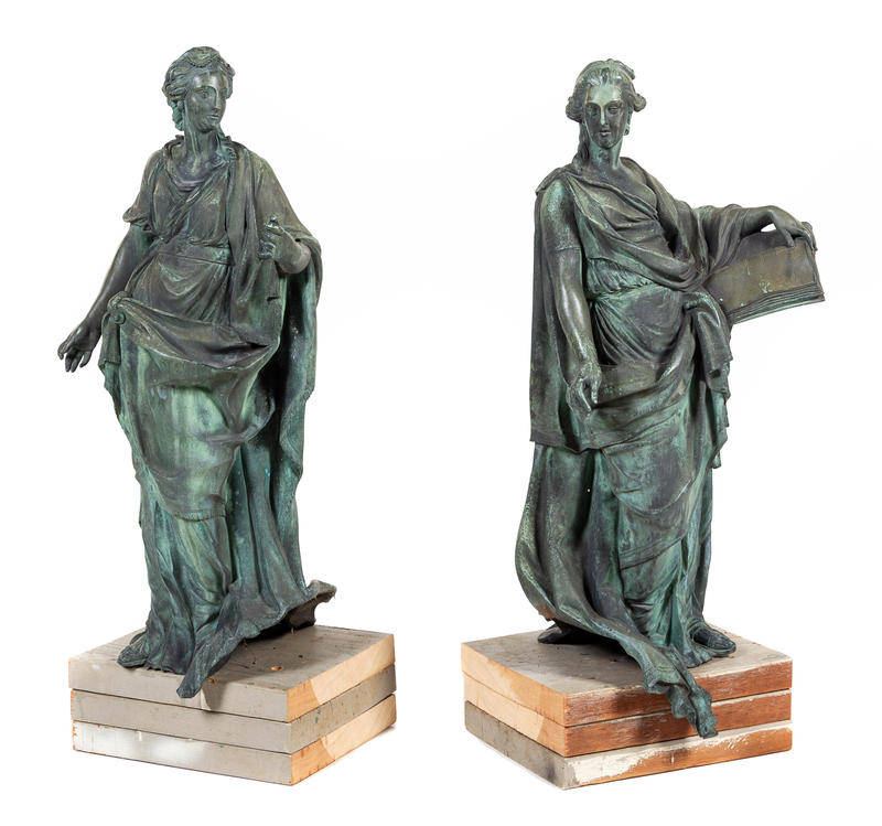 A Pair of Cast Metal Garden Figures Height 32 inches.