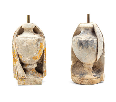 A Pair of French Carved Stone Finials Height of stone 15 inches.