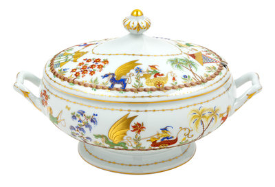 A French Porcelain Cirque Chinois Tureen and Cover Width 13 1/2 inches.