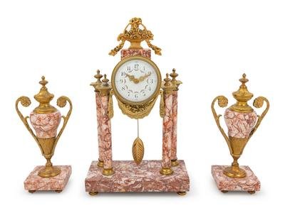 A French Gilt and Patinated Bronze Figural Mantel Clock Height 30 3/4 inches.