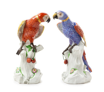 A Pair of French Porcelain Parrots Height of taller 16 1/4 inches.