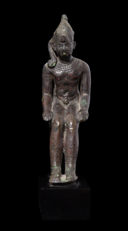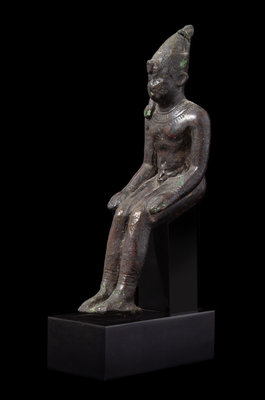 An Egyptian Bronze Seated Harpokrates Height 4 1/4 inches.