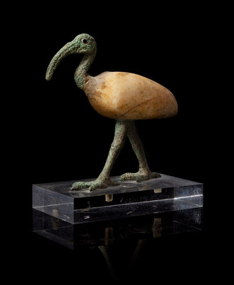 An Egyptian Bronze and Alabaster Ibis Height 5 1/2 inches.