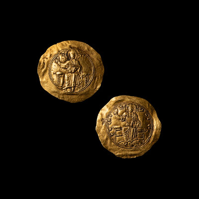[ANCIENTS] BYZANTINE EMPIRE. Alexius I Comnenus (c. 1081-1118)(4.3 g) and John II Comnenus (c. 1118-1143) (4.5g). Av Hyperpyron; two coins.