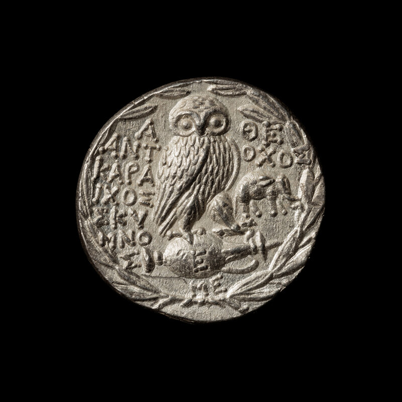 [ANCIENTS] ATTICA. Athens. Honoring Antiochus IV Epiphanes (c. 160 BC). Ar Tetradrachm. (16.9 g, 30mm).