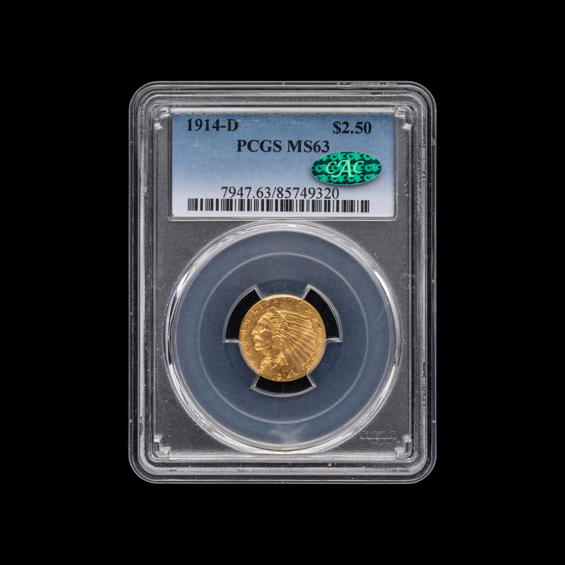 A 1914-D Indian Head $2.50 Gold Coin [PCGS MS63; CAC Green Sticker]