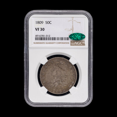 An 1809 Capped Bust 50c Coin [NGC VF30; CAC Green Sticker]