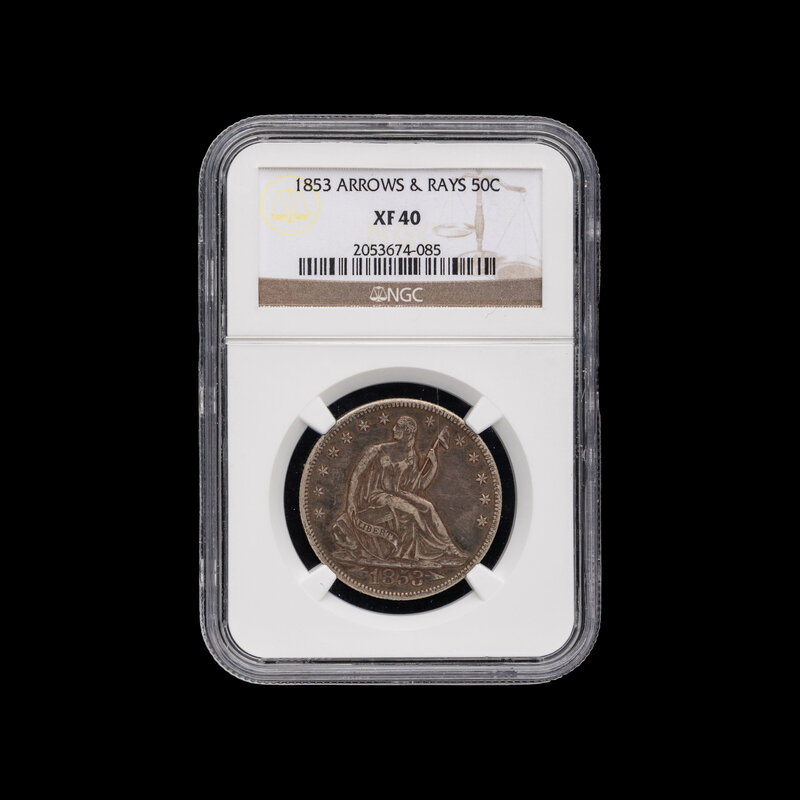 An 1853 Seated Liberty: Arrows and Rays 50c Coin [NGC XF40]
