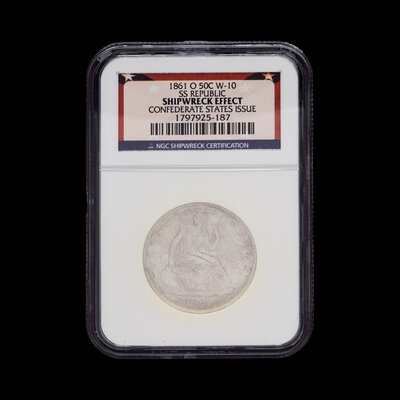 An 1861-O Confederate States Issue Seated Liberty: SS Republic 50c Coin (NGC Shipwreck Effect)