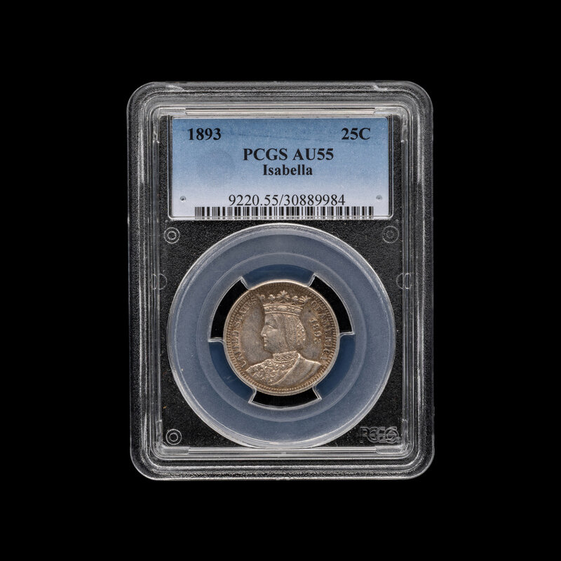 An 1893 Isabella Commemorative 25c Coin [PCGS AU55]