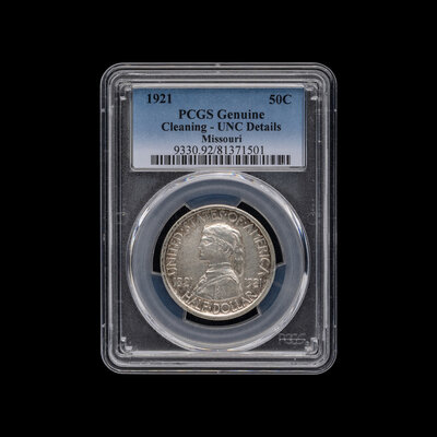 A 1921 Missouri Commemorative 50c Coin [PCGS Unc Details-Cleaned]