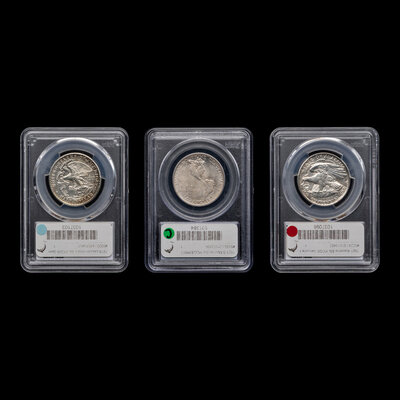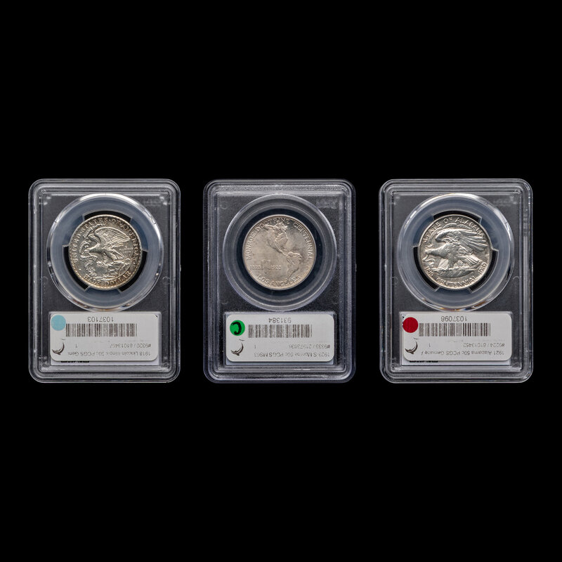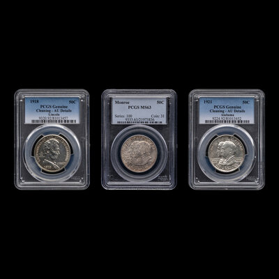 comprising a 1923-S Monroe [PCGS MS63], 1918 Lincoln [PCGS AU Details-Cleaned] and a 1921 Alabama [PCGS AU Details-Cleaned].