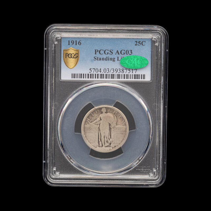 A 1916 Standing Liberty 25c Coin [PCGS AG03; CAC Green Sticker]