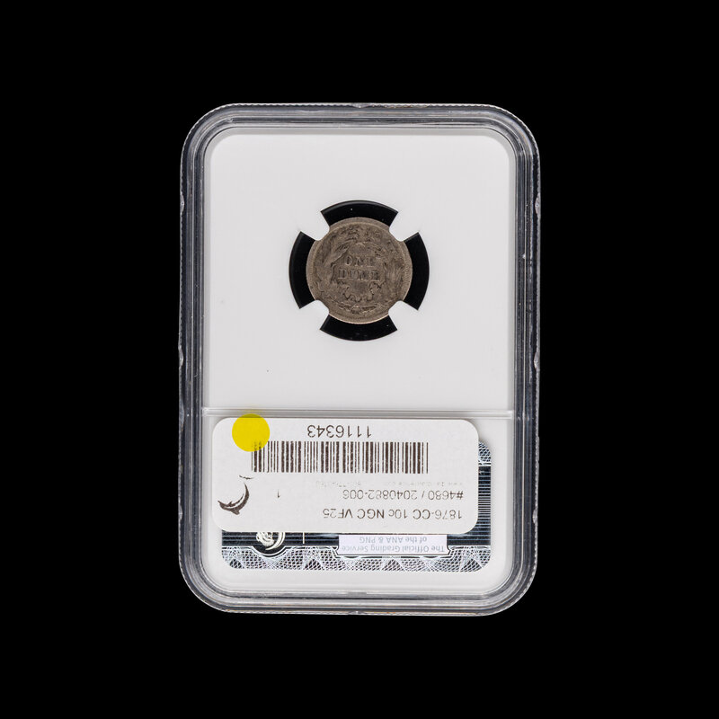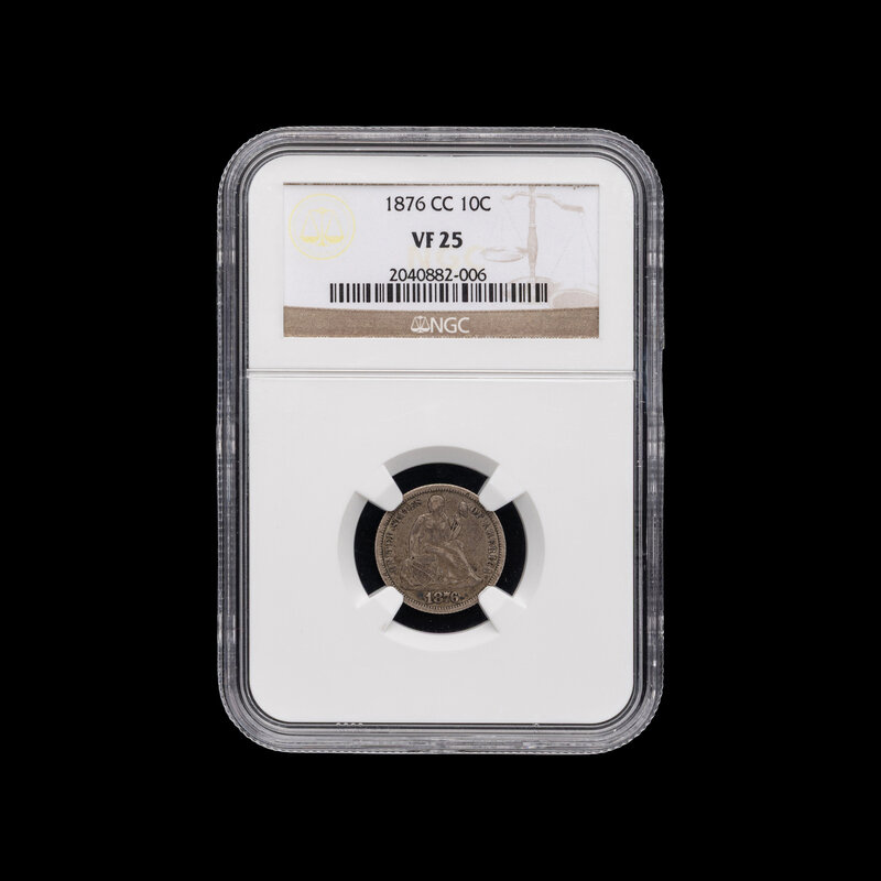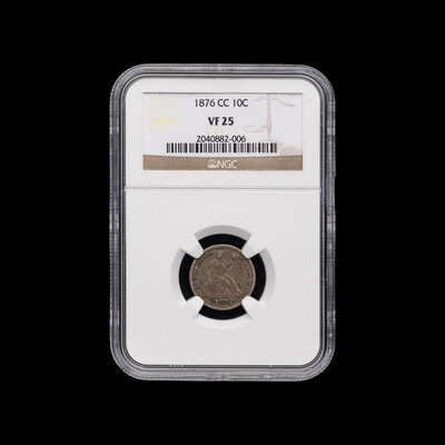 An 1876-CC Seated Liberty 10c Coin [NGC VF25]