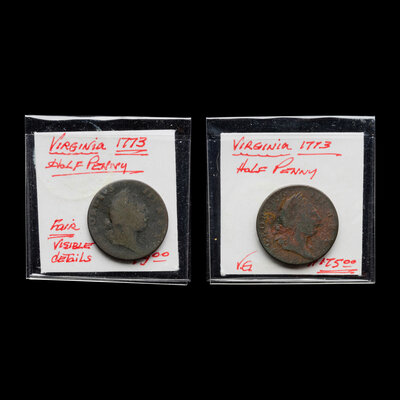 [COLONIAL] Two Virginia 1771 1/2 Penny Coins