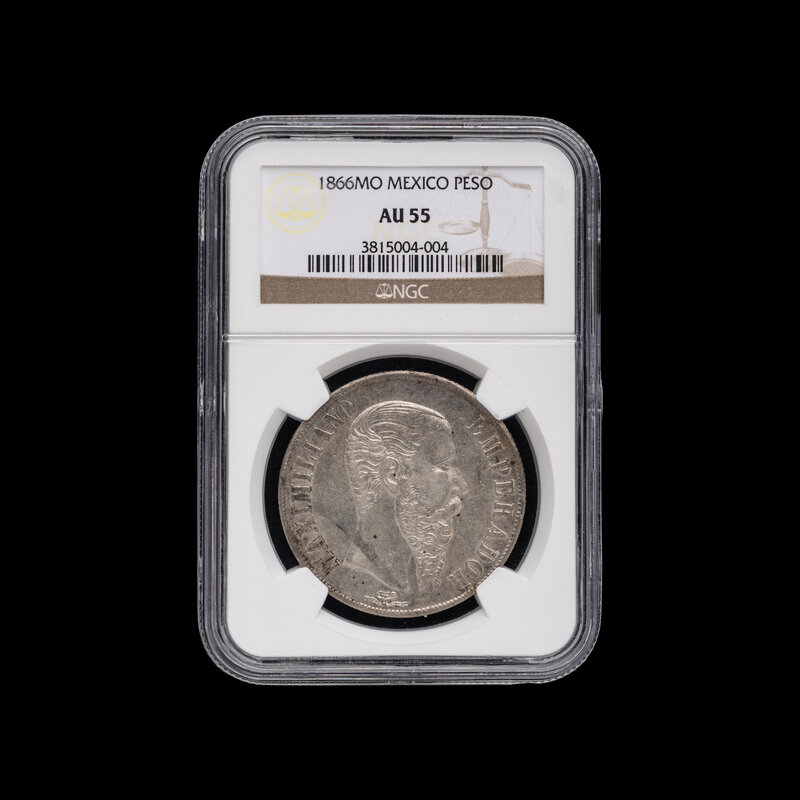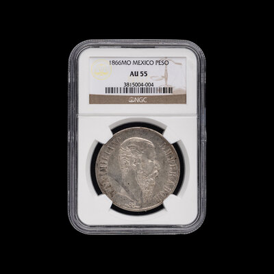 [MEXICO] An 1866-MO Emperor Maximillian 1 Peso Coin [NGC AU55]