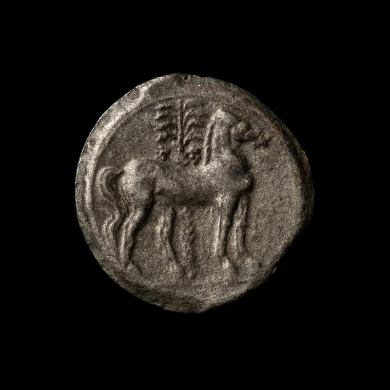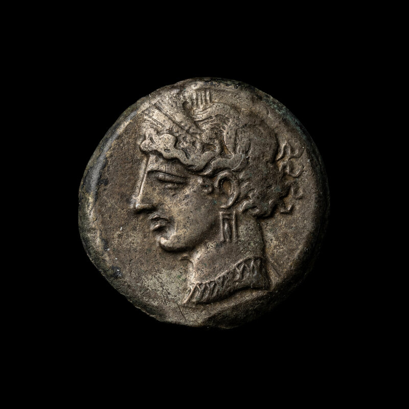 [ANCIENTS] ZEUGITANA. Carthage. Hannibal Barca (210-205). Billon Tridrachm or One-and-a-Half Shekel. (10.7 g, 27mm).