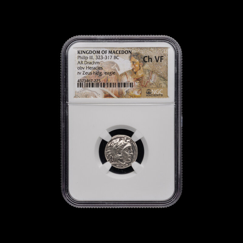 [ANCIENTS] MACEDONIAN KINGDOM. Philip III (323-317 BC). Ar Drachm. [NGC ChVF]