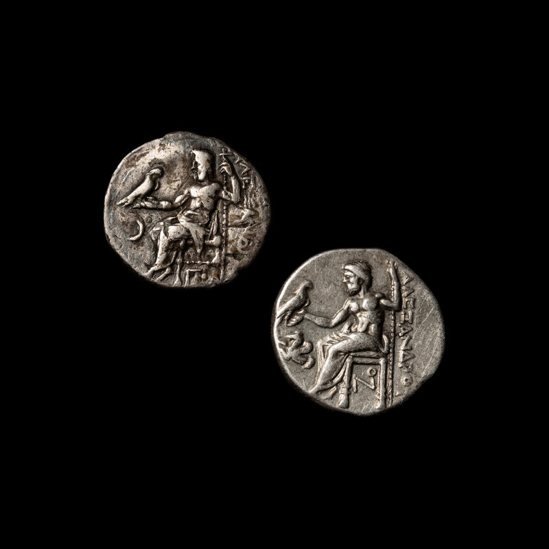 [ANCIENTS] MACEDONIAN KINGDOM. Alexander III [the Great] (c. 336-301 BC). Lampsacus and Other. Ar Drachmae. (4.2 g); two coins.