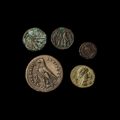 [ANCIENTS] PTOLEMAIC KINGDOM. Ptolemy III-Cleopatra VII and Mark Antony (c. 246-30 BC). Ae Coinage; 5 coins total.