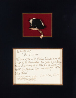 [LINCOLN ASSASSINATION]. A piece of President Abraham Lincoln's coat worn on the night of his assassination at Ford's Theatre, 14 April 1865.