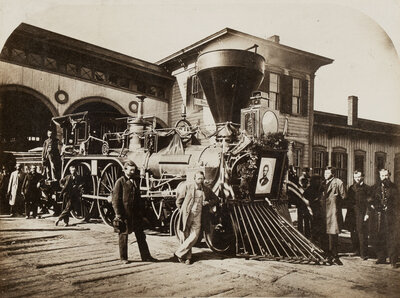 [LINCOLN'S FUNERAL]. A photograph of the "Nashville" locomotive that conveyed President Lincoln's body, ca. 24 April 1865. Printed ca late 19th-early 20th century.