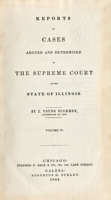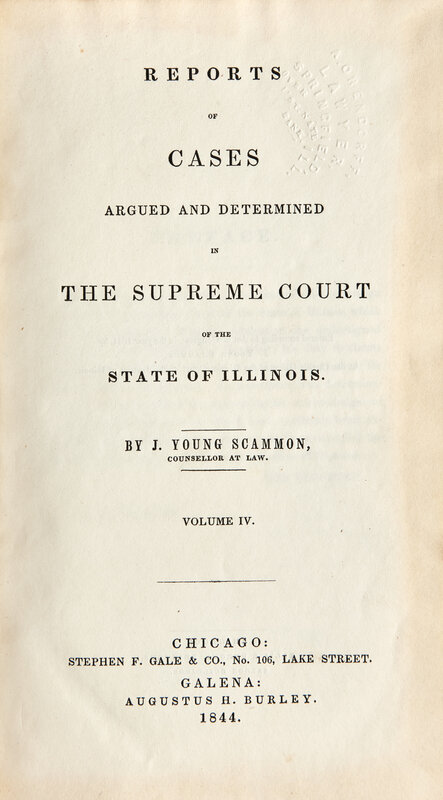 [LINCOLN-HERNDON LAW OFFICE]. SCAMMON, J. Young. Reports of Cases Argued and Determined in the Supreme Court of the State of Illinois. Vol. IV. Chicago: Stephen F. Gale & Co./Galena: Augustus H. Burley, 1844.
