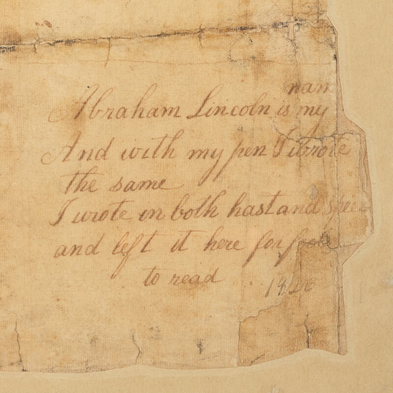 THE EARLIEST SURVIVING EXAMPLE OF ABRAHAM LINCOLN'S HANDWRITING.