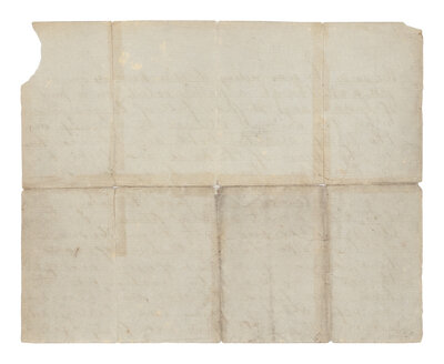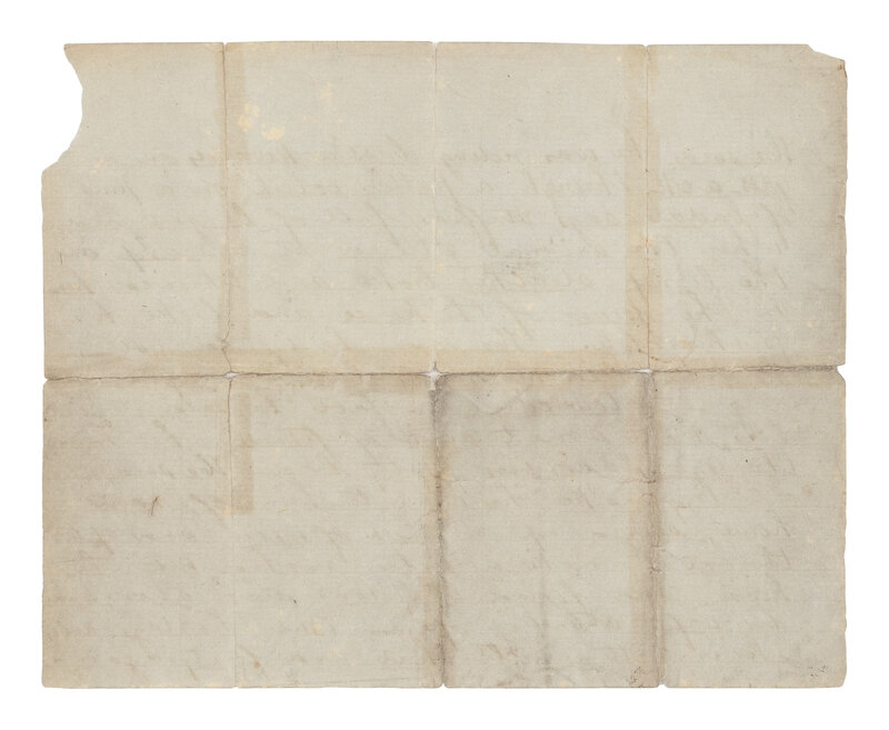 1 p.; 7 x 8 1/2 in. (178 x 216 mm) on pale blue paper; silked; creasing from old folds, small losses along same affecting a few letters; small marginal loss in upper right corner not affecting text; scattered spotting.