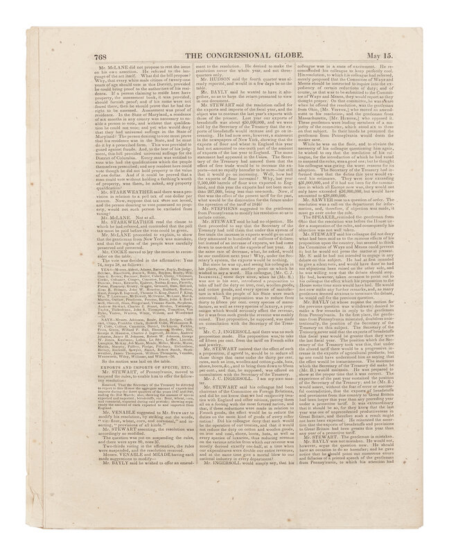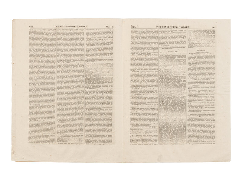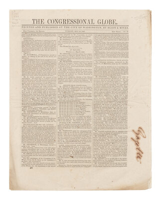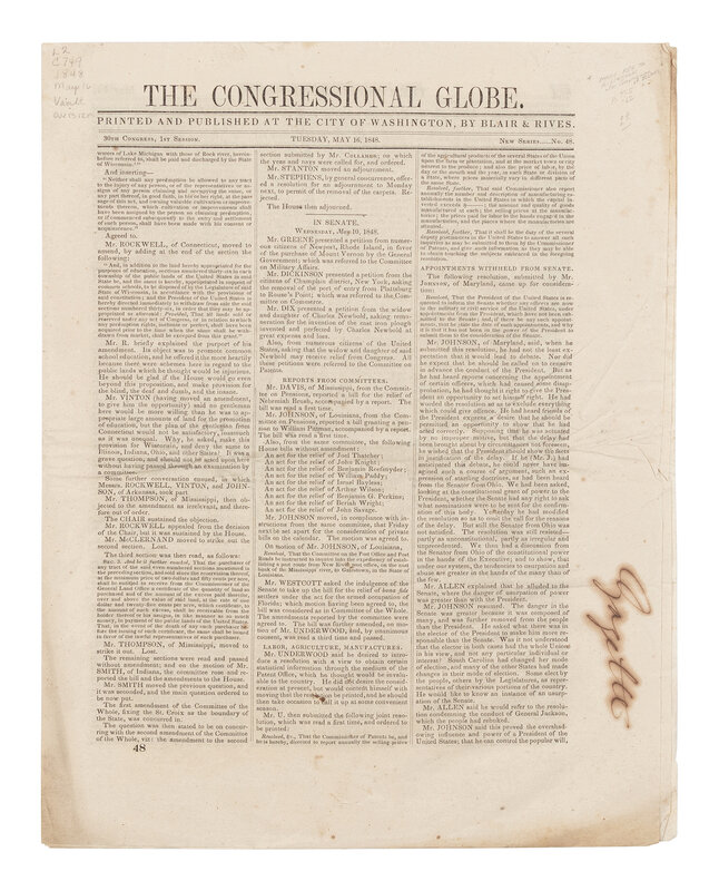 [LINCOLN, Abraham (1809-1865)]. The Congressional Globe. 30th Congress, 1st Session. New Series No. 48. Washington, D.C.: Blair & Rives, 16 May 1848.