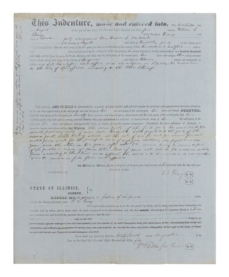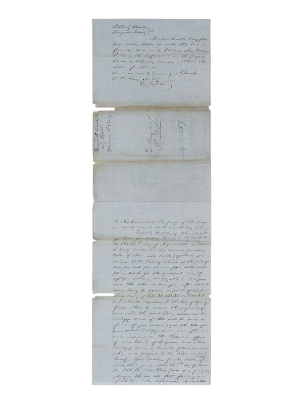 A very rare archive of real estate and legal documents related to a single six-year-long real estate case administered and litigated by Lincoln on behalf of a relative, and dating to the critical period of his rise to national prominence.