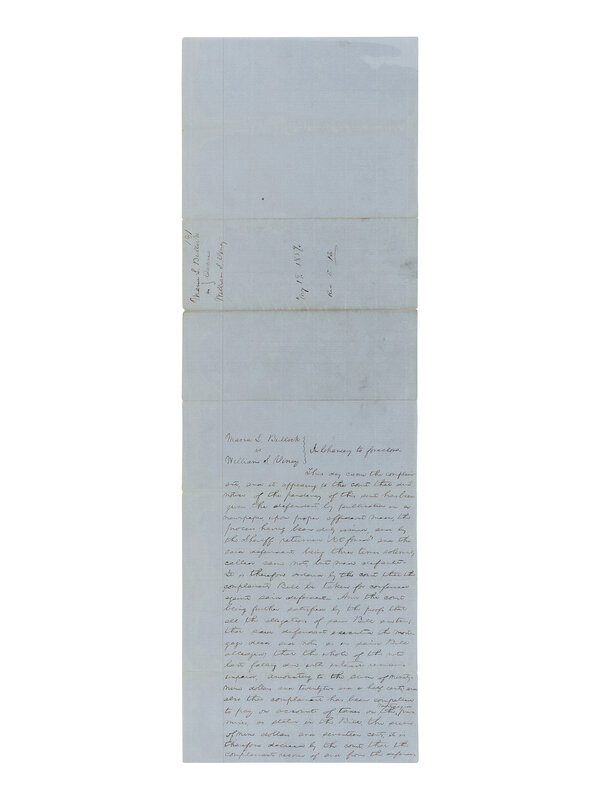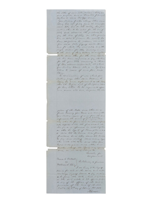 This archive is perhaps one of the largest, and possibly the only, privately held collections of documents of its kind relating to a single case for which Lincoln acted as an agent. As such, it reflects his familial and legal commitments at a critical moment in his political ascendancy, on the cusp of his presidency.