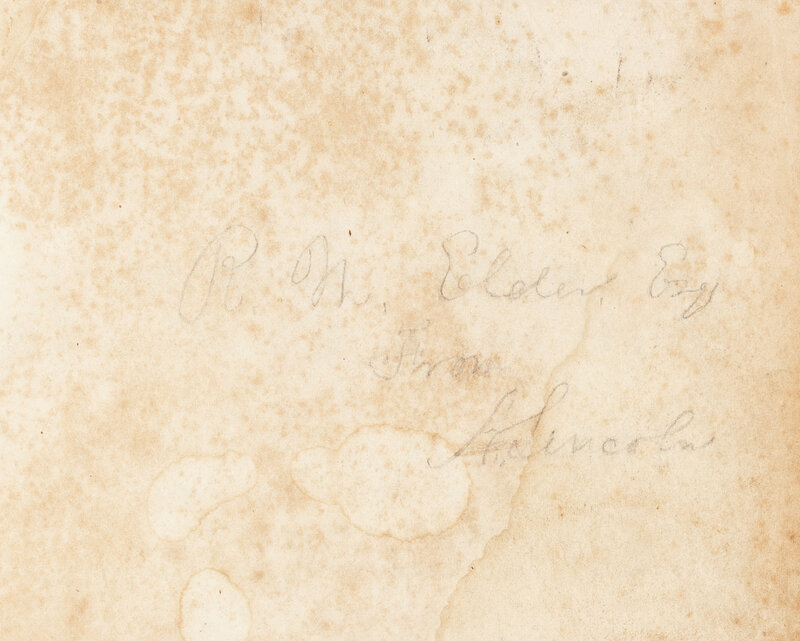 PRESENTATION COPY, INSCRIBED BY LINCOLN IN PENCIL ON FRONT FLYLEAF: "R.M. Elder Esq. From A. Lincoln." Elder, a Justice of the Peace in Springfield, made speeches for Lincoln during the 1860 presidential campaign. FIRST EDITION, later issue, with rule above imprint on title, no press figure at bottom of p. 17.