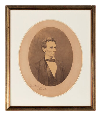 [LINCOLN-HAMLIN CAMPAIGN]. HESLER, Alexander (1823-1895), photographer. An oval bust portrait signed ("A. Lincoln"), ca. 3 June 1860.