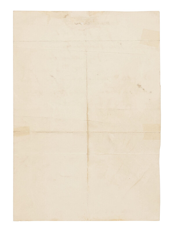 1 p.; 6 1/2 x 4 1/2 in. (165 x 114 mm); creasing from old folds, minor repairs to same on verso; abrasion in top edge center from old mount, affecting both sides.