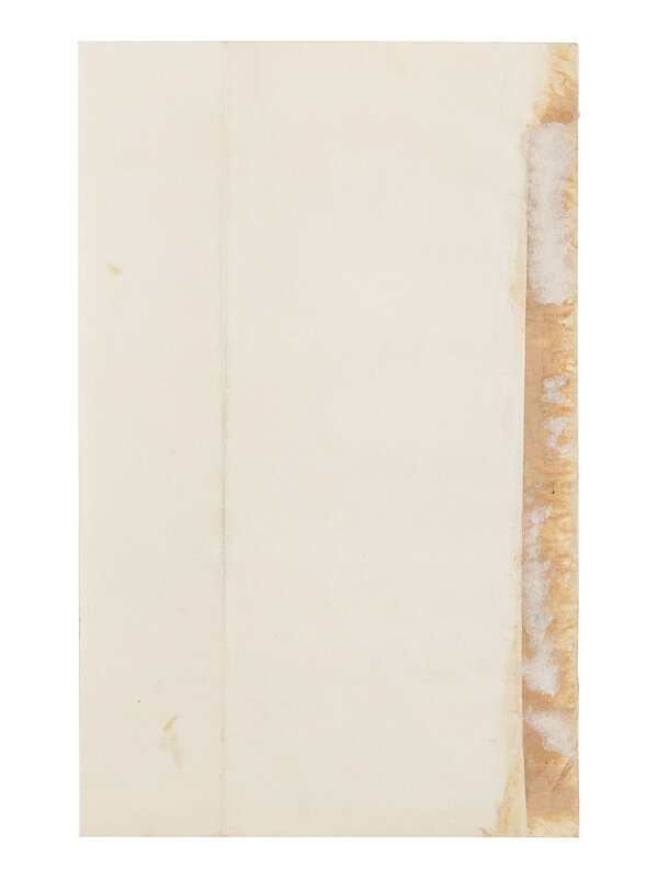 1 p. on bifolium; 8 x 5 in. (203 x 127 mm); creasing from old folds; numerical notation in top left; scattered light soiling; remnants of old mount on verso.