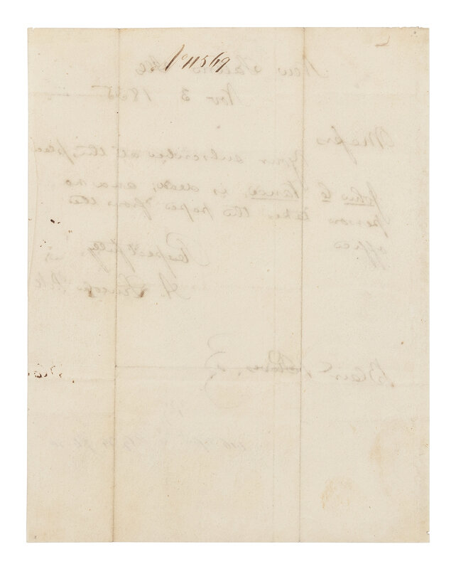The Official Registrar of the United States records that as postmaster, Lincoln received $55.70 in pay in 1835, but his appointment to the role bears far greater significance than a means of income. Besides pay, Lincoln could send and receive letters for free and receive one daily newspaper for free. As postmaster, Lincoln was afforded opportunities that would help pave the way towards his political success. His neighbors came to pick up their mail at the post office—or Lincoln famously delivered it himself—and along the way, the young Lincoln became acquainted with the population of Sangamon County, as they did with him. These connections would help him tremendously as he sought success in pioneer politics. As evidenced in the letter offered here, Lincoln also had access to a wide range of newspapers and periodicals that arrived for subscribers in his county. These publications would have provided Lincoln a more comprehensive view of the world beyond Sangamon County and Illinois, and offered multiple viewpoints on the most pressing societal and political issues of the day. Basler 1, p. 38; Papers of Abraham Lincoln Digital Library D200056.