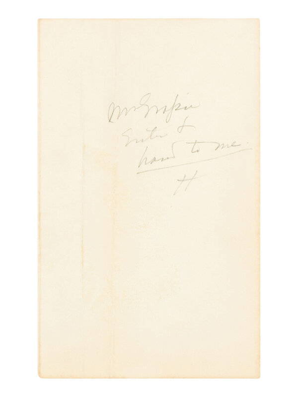 1 p. on bifolium; 8 x 5 in. (203 x 127 mm), on Executive Mansion stationery; creasing from old folds.