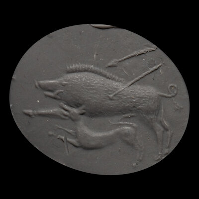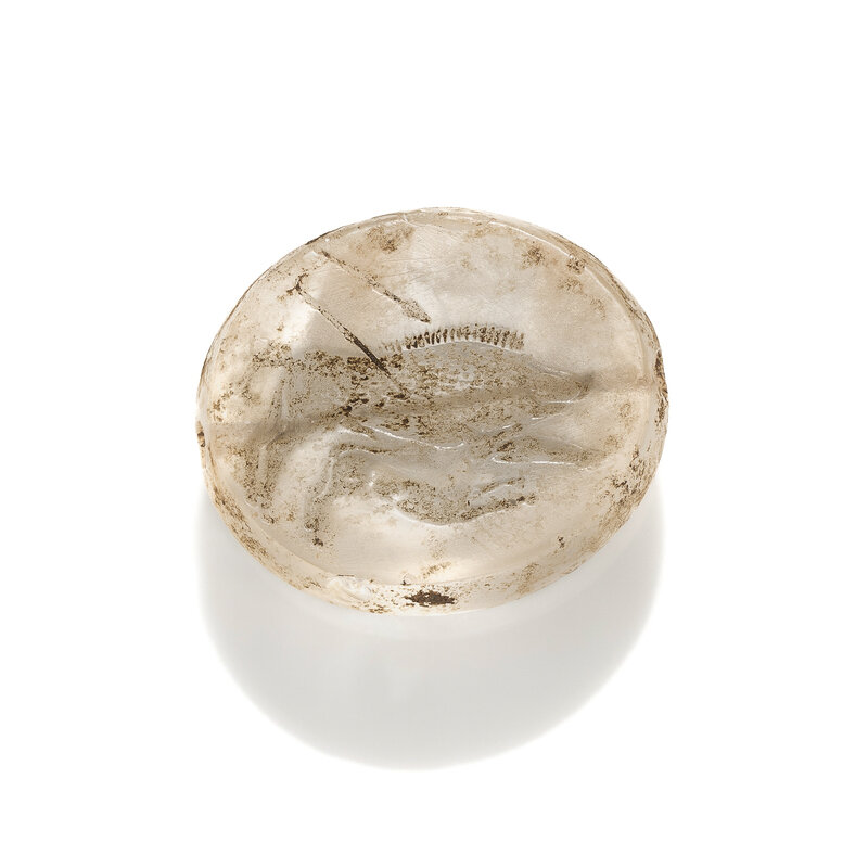 A Greco-Persian Rock Crystal Scaraboid with a Boar Hunt