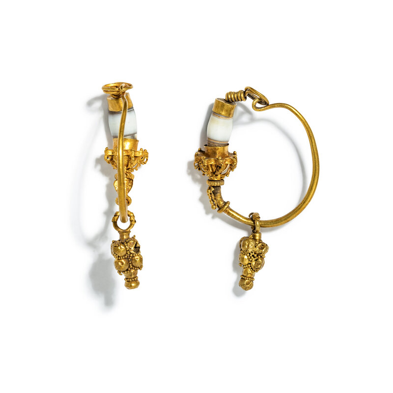 A Pair of Eastern Roman Gold and Agate Hoop Earrings