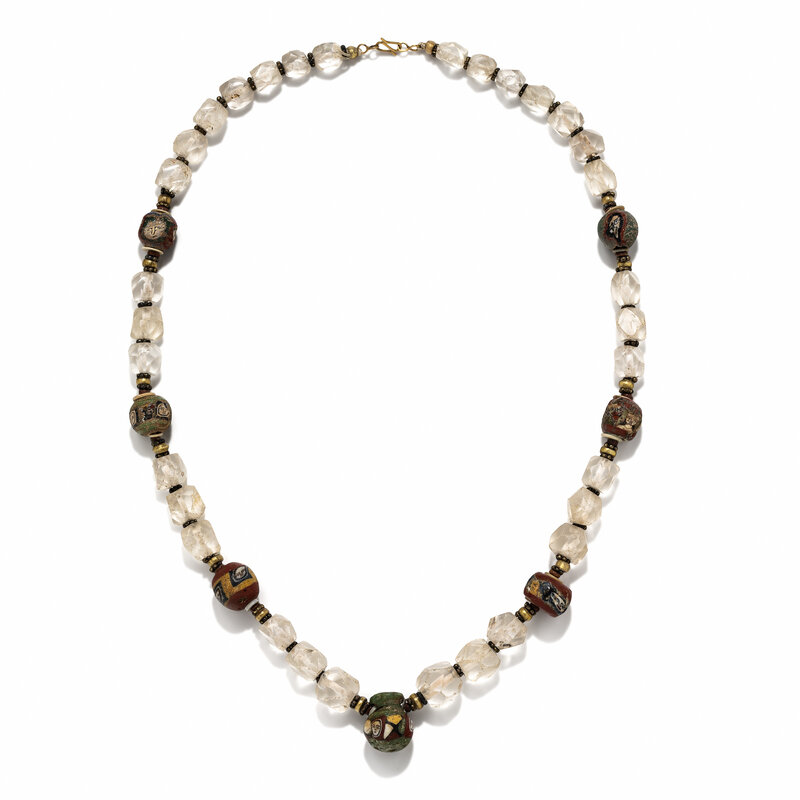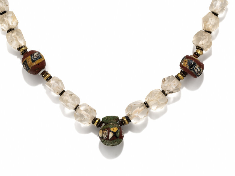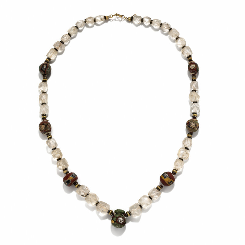 A Roman Rock Crystal and Face Bead Necklace