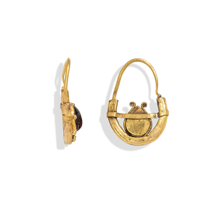 A Pair of Roman Gold and Garnet Earrings